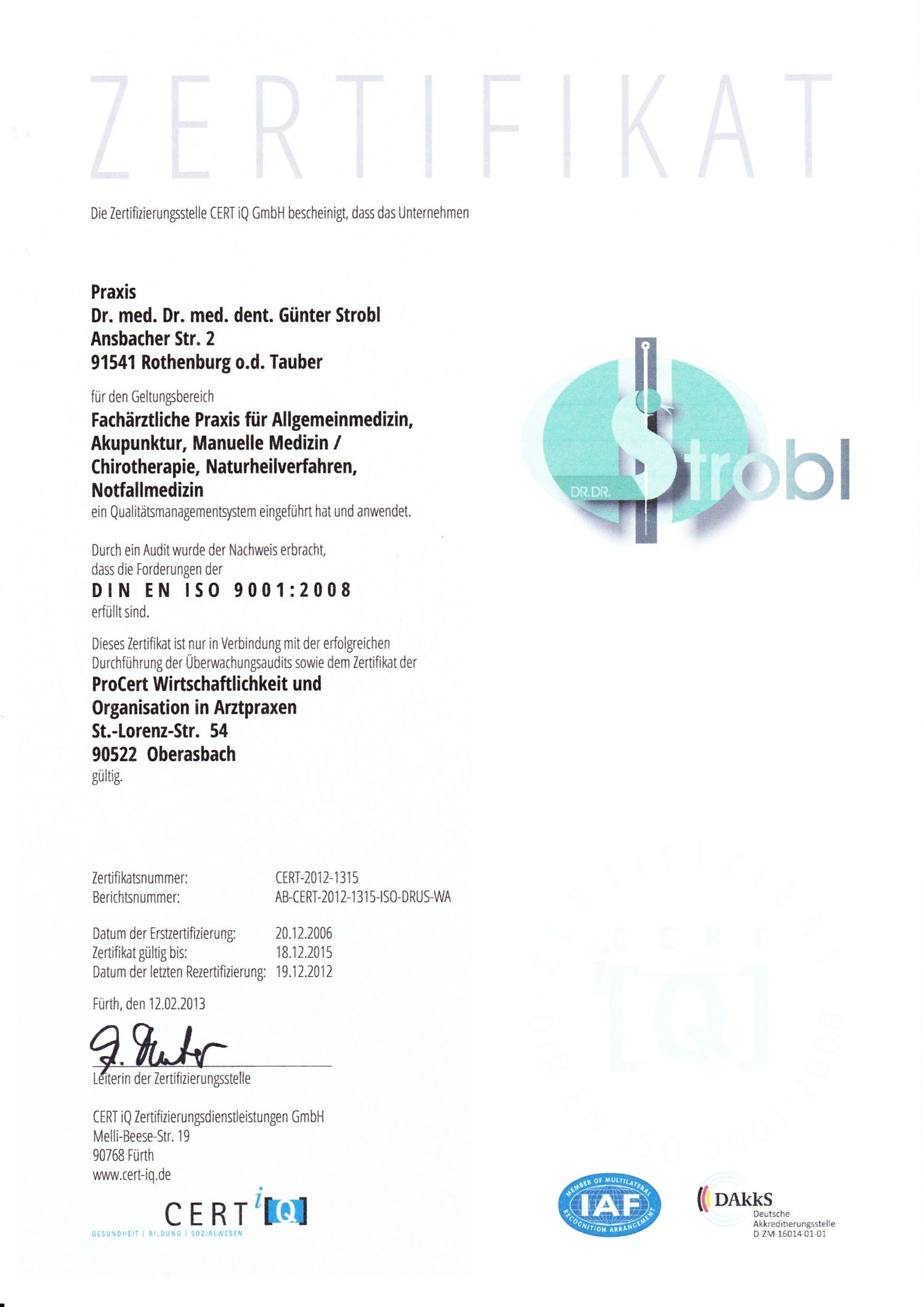 Arzt für Allgemeinmedizin Naturheilverfahren - Notfallmedizin Akupunktur und Chirotherapie zertifiziert: Qualitätsmanagement nach DIN EN ISO 9001:2008 |